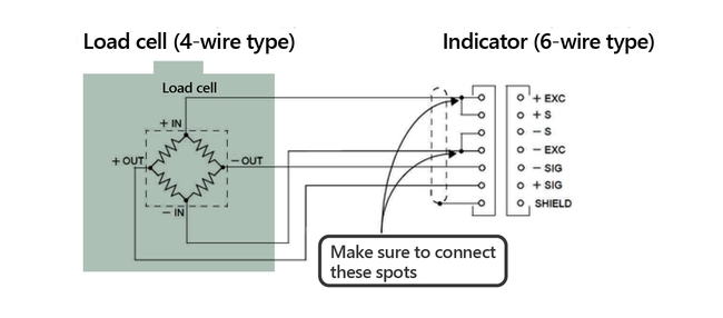 For the load cells as well as amplifiers and indicators where the load cells are connected to, there are "4-wire type" and "6-wire type". If not wired properly, it may cause not only inaccurate measurements, but also may be affected by the temperature or the cable length.