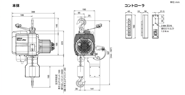 電動バランサ「ムーンリフタ」は、吊ったワークの重量がゼロになるようバランスし、軽い力で扱うことができる吊下げ型のパワーアシスト装置です。