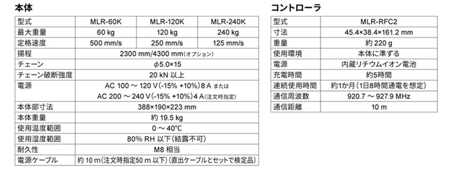 チェーンの揚程は4mまで、電源ケーブルは50mまで対応が可能です。