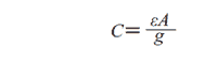 As shown in the figure below, the principle of parallel plate capacitor is applied to the PS sensor. Suppose the electrostatic capacitance between the center electrode and the target is “C”, the inductivity and distance between probe and the target are “ε” and “g,” and center electrode surface area is “A”, then, electrostatic capacitance can be calculated by the following formula: